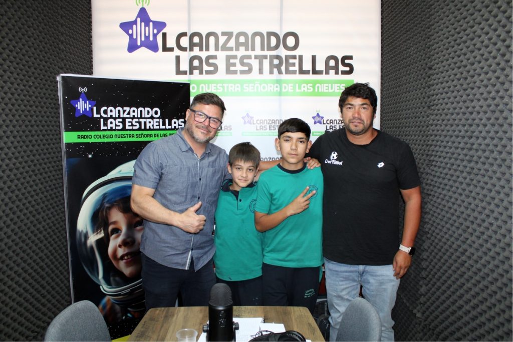 En la conducción: Cristian «Pajarito» Orchard, Alonso Recabarren (6° Básico), Diego Poblete, Andrés González, de 3° Medio) y el profesor Patricio Pérez.