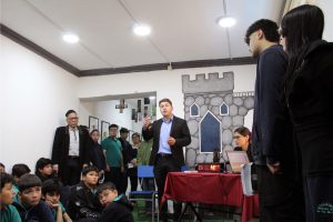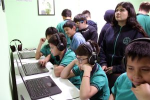 Grabado en vivo, en sala «El Caballero de la Piel de Tigre», colegio Ecológico Nuestra Señora de las Nieves, San Bernardo.